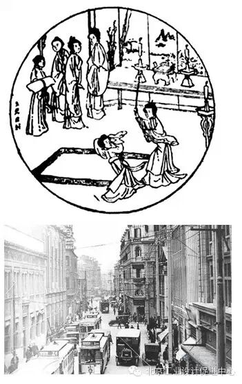 现代文明极大地释放了人的个性与面向未来的开拓性,但对于其切断人的内心世界与传统文脉之间的关联而带来的文化脆弱与集体性的社会焦 虑同样不可忽视。现代设计进入中国的过程,恰好对应着一种“解域化”的工业方式猛烈冲击着这种文化整体性的过程,因而与上述的社会矛盾之间产 生了复杂的交集。由于这种矛盾的交集,使得现代 设计植入中国社会的过程,远远不似一种艺术风格的生成或演化那么简单,它基本上应当被视为一种 与在地的文明与文化方式完全不同的价值系统“嵌入”(Embeddedness)[2] 与适应的社会变革过程。这种新的、代表着抽象性生产关系与文化方式的系 统“嵌入”,势必打破社会传统原有的结构,“腾出”相应的“空间 ”。这种空间关系的更替不仅是物质性的,更是精神性的;不仅是市场性的,更是生活性的 ;不仅是文化性的,甚至是制度性的,会在一种比人们的想象更为深刻的层面上影响一个民族的生活面貌与社会的整体氛围。图 2 与图 3 是 20世纪的百年之中上海同一处街景所发生的巨大变化。20 世纪的中国社会不仅面临着现代化过程中视觉景观的巨变,更面临着整个文化结构与传统精 神的重新定义。这个过程中通过向西方的学习、模仿和自我改进,汲取了经验,形成现代文明进步和成长的基础,但同时也生成新的困惑,需要不断地反思。