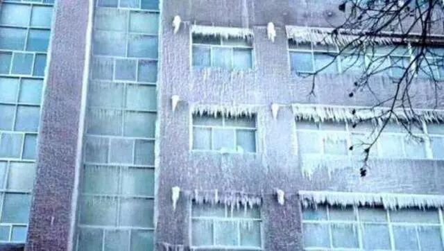 然而,人算不如天算,那几天夜里温度低至零下10℃,操作人员没有掌握好“火候”,一个“用力过猛”,将大楼喷成了栩栩如生的“冰雕”。