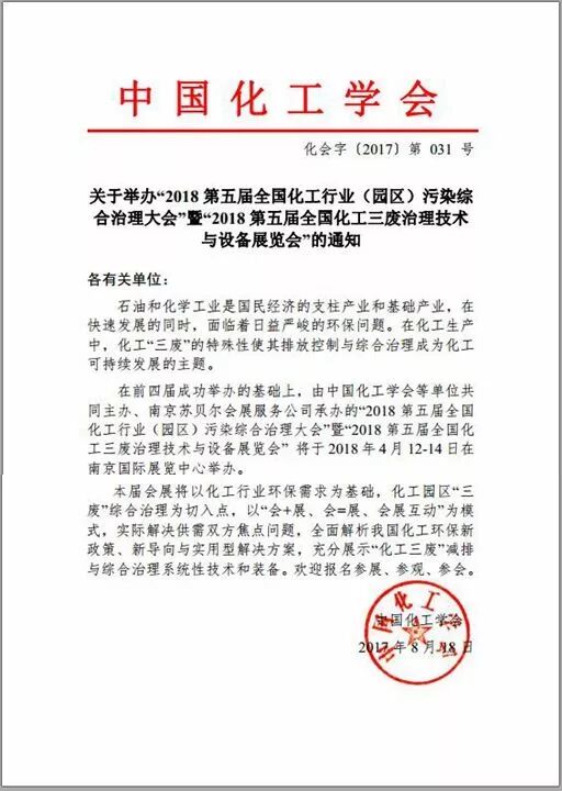 为了协助企业尽快了解政策导向、完善环保措施,中国化工学会等行业组织,以化工行业的实际需求为基础,以化工三废的综合治理为切入点,举办了多届“全国化工行业(园区)污染综合治理大会暨展览会”。
