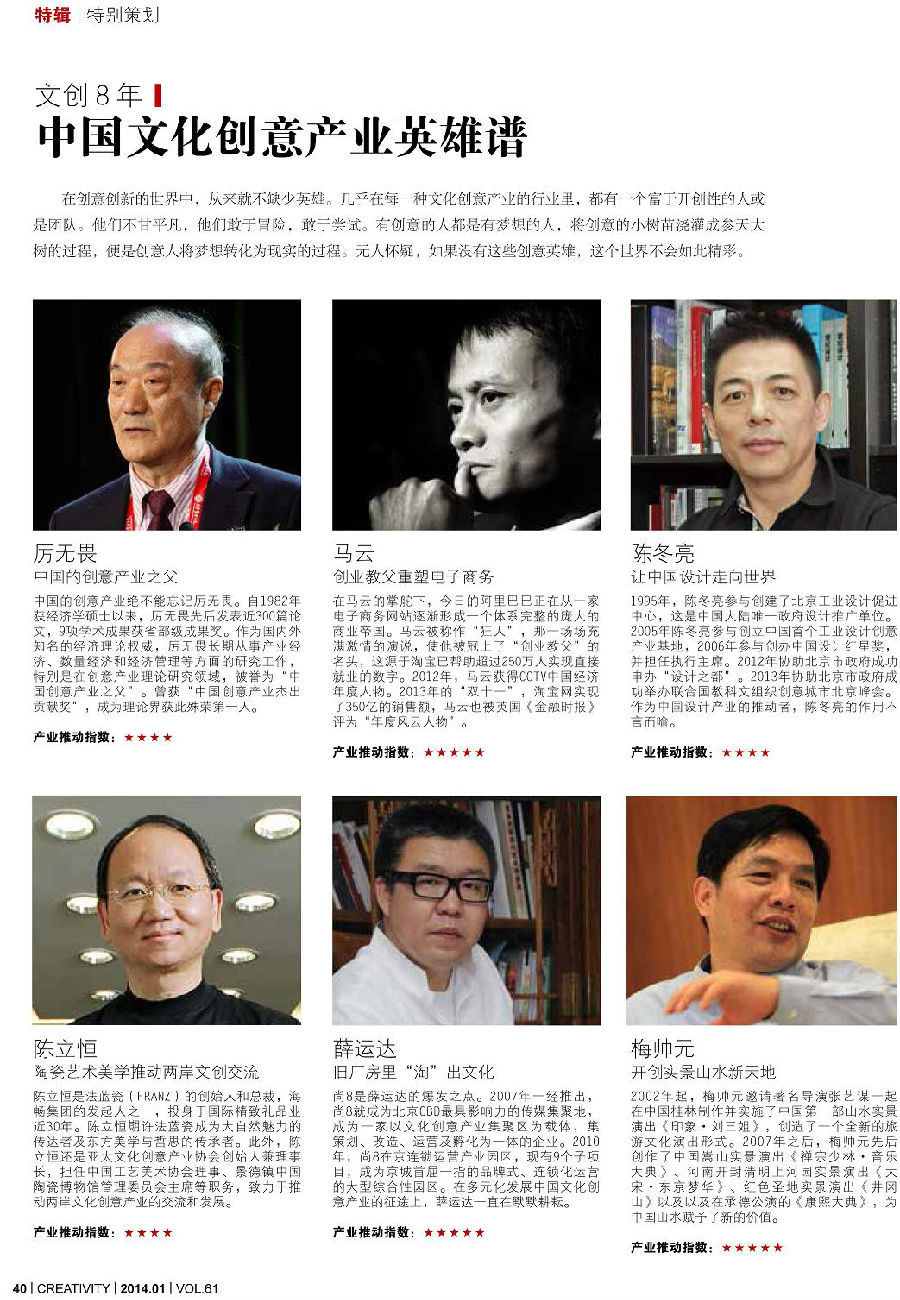中国文化创意产业英雄谱揭晓 马云、陈冬亮等入选