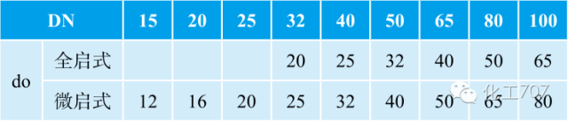 根据最小泄放面积可求出流道直径 do,查表 4,可确定安全阀公称通径 DN,查表 5,可确定安全阀型号。