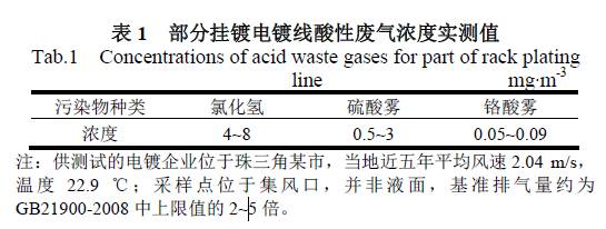 下表中列出笔者在电镀项目环境影响评价过程中测试取得的酸性废气未处理时浓度情况,以供参考:
