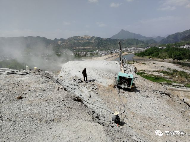 该项目施工工地道路一侧开挖矿山爆破作业面,沿河约两公里大量沙石物料露天堆放,施工现场均未采取防尘抑尘措施,6km左右道路作业区扬尘漫天,搅拌站所产生废水直排河道。