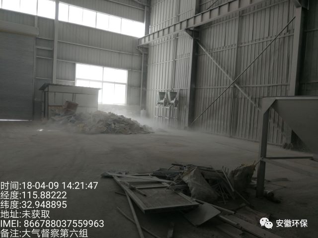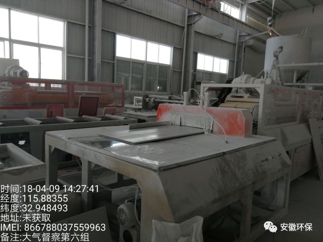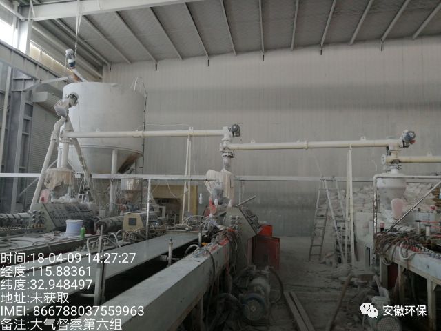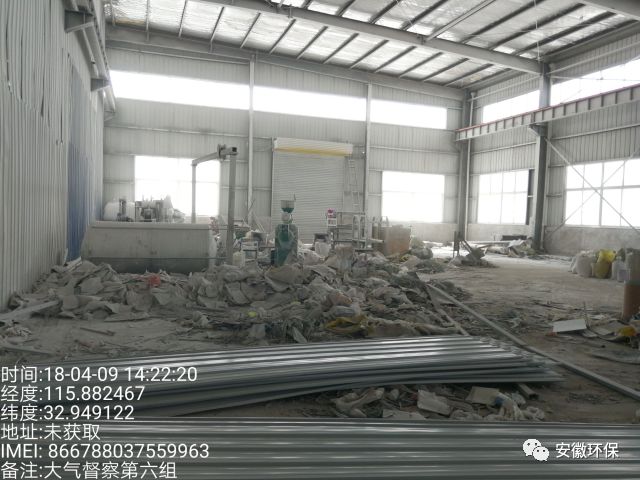 塑钢板材加工项目无环评手续,破碎、切割工艺粉尘无组织排放严重,未配套建设污染防治设施。现场地面积尘严重。
