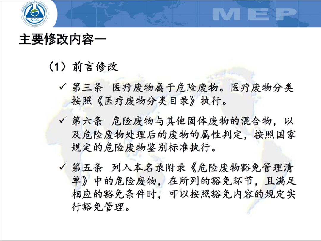答:列入《危险废物豁免管理清单》中的危险废物,在所列的豁免环节,且满足相应的豁免条件时,可以按照豁免内容的规定实行豁免管理。在满足上述条件前提下,“豁免内容”含义如下: