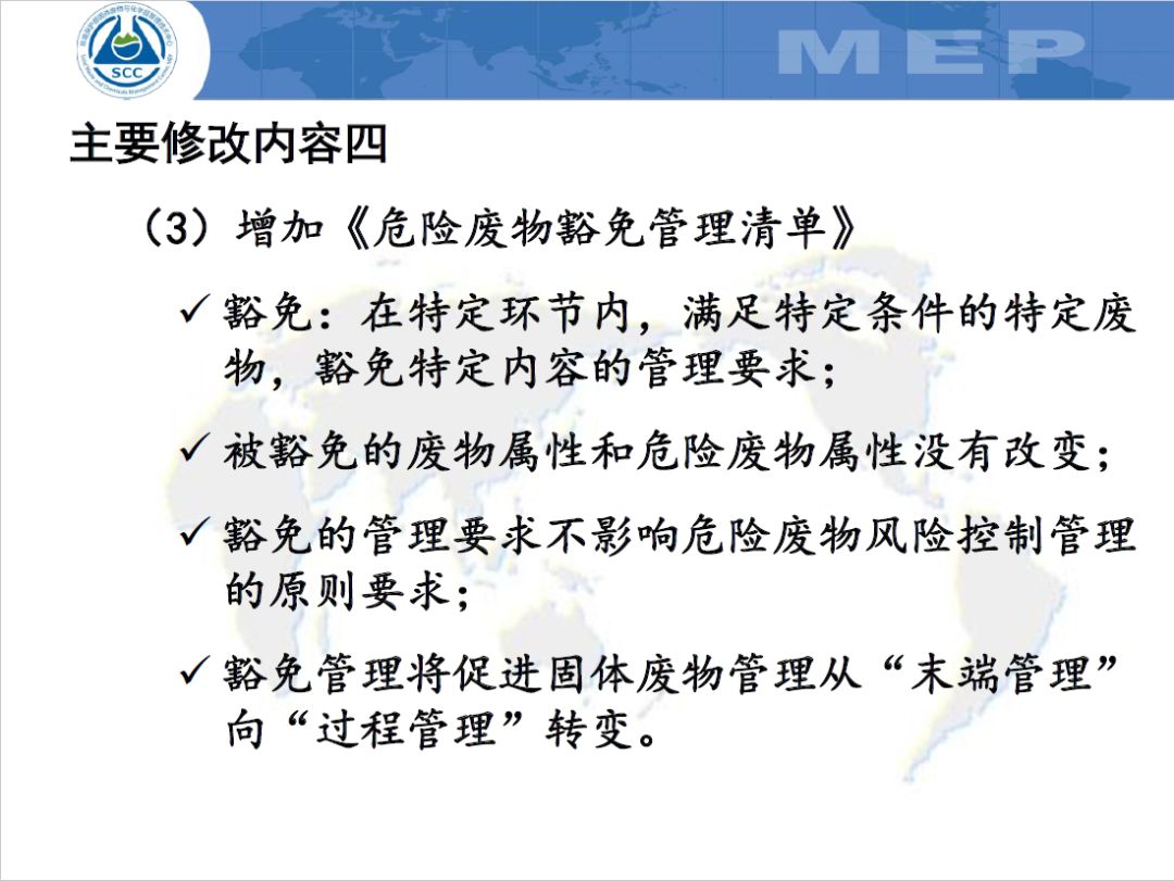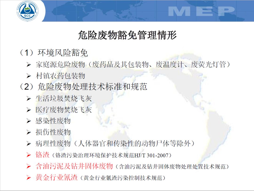 “全过程不按危险废物管理”:全过程(各管理环节)均豁免,无需执行危险废物环境管理的有关规定;