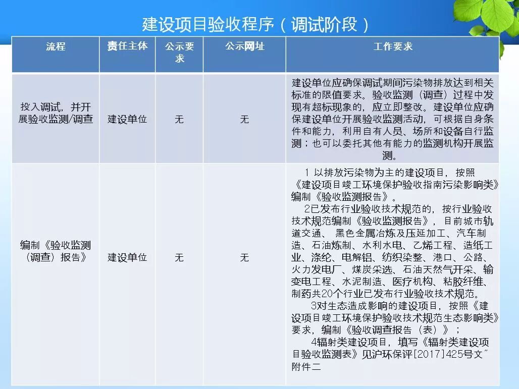 为进一步严格贯彻落实《建设项目环境保护管理条例》、《建设项目竣工环境保护验收暂行办法》等相关政策的要求,加强对建设单位自主环保验收的指导和监督检查,规范建设项目竣工后建设单位自主开展环境保护验收的程序和标准,小编放几张图来带大家读懂建设项目竣工后建设单位自主开展环境保护验收的程序和标准。
