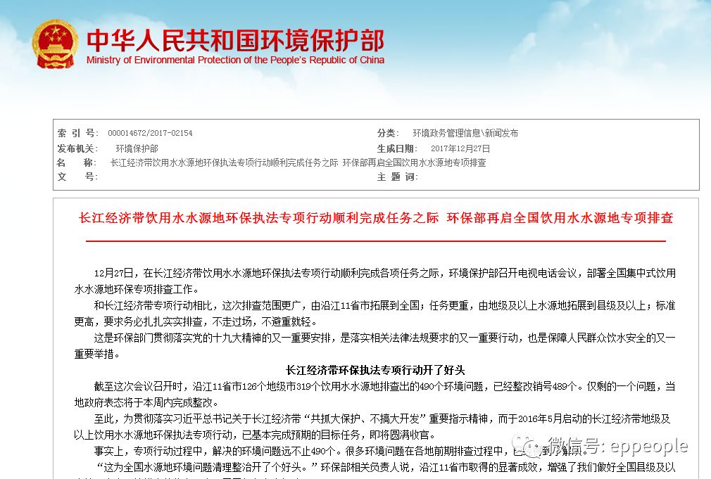 这是环保部门贯彻落实党的十九大精神的又一重要安排,是落实相关法律法规要求的又一重要行动,也是保障人民群众饮水安全的又一重要举措。