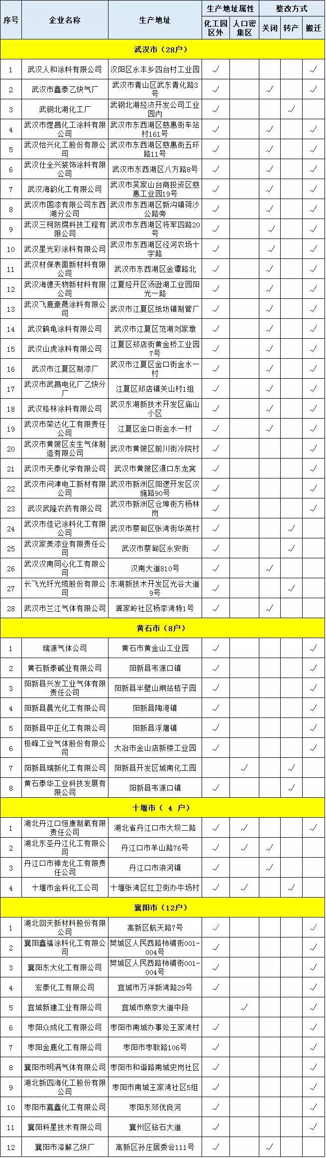 附件:湖北省危险化学品生产企业搬迁改造任务清单