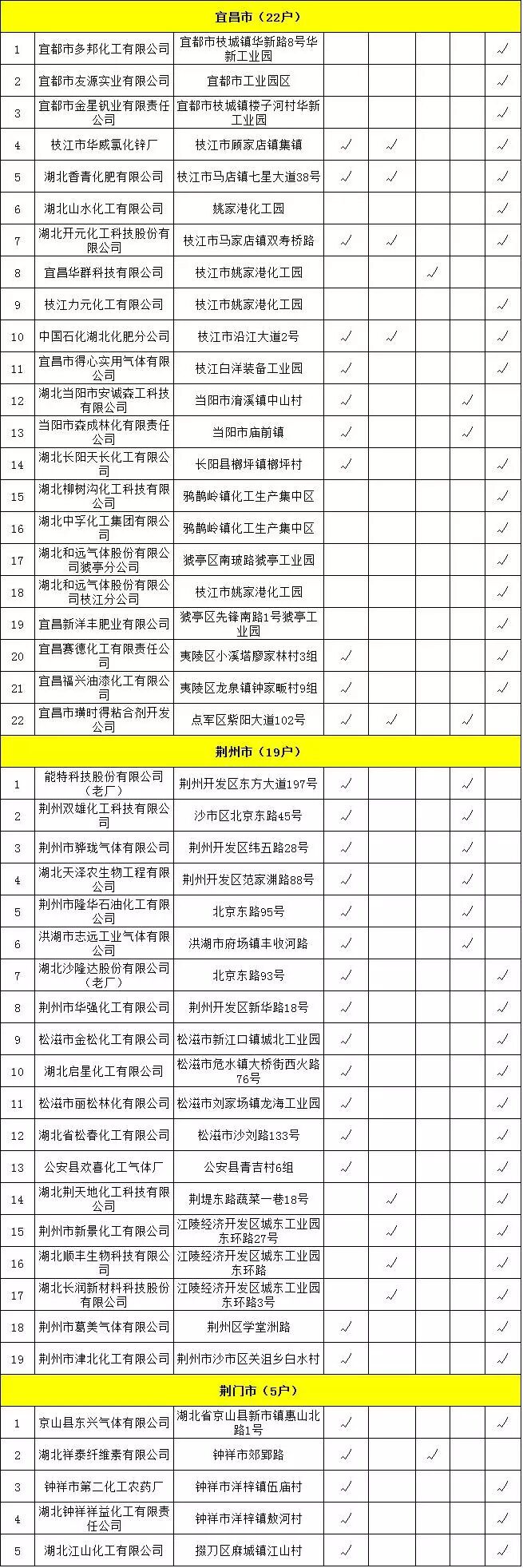 注:2018年3月31日前,各市、州、直管市及神农架林区人民政府可在此表基础上补充完善本地区危险化学品生产企业搬迁改造任务清单,报省推进危险化学品生产企业搬迁改造工作领导小组办公室作为检查考核的依据。