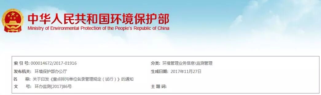 重磅||环保部官网正式发布《重点排污单位名录管理规定(试行)》的通知