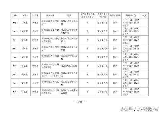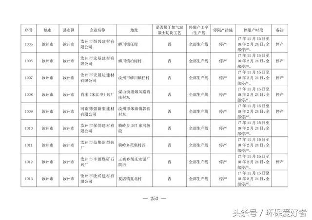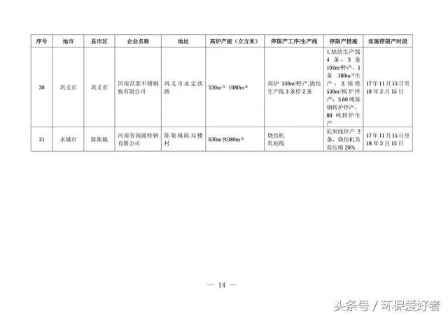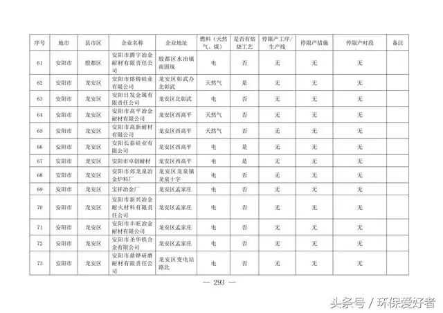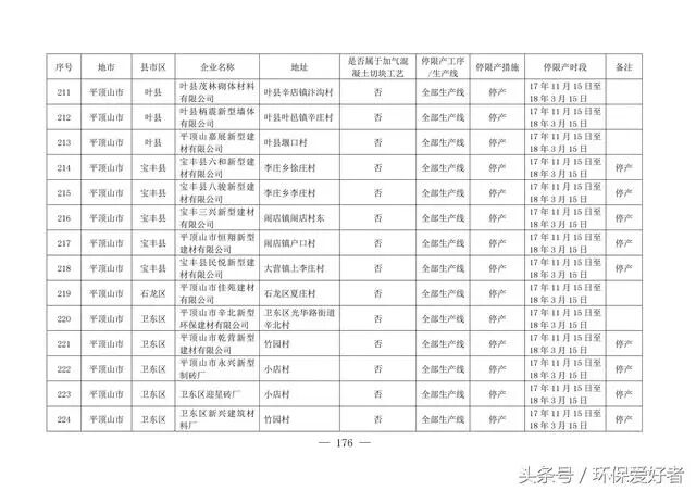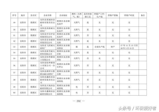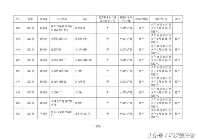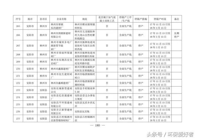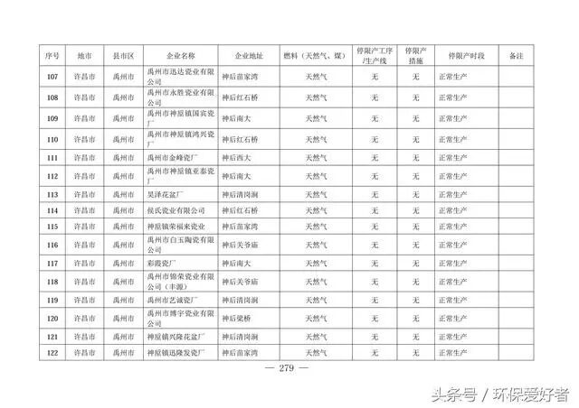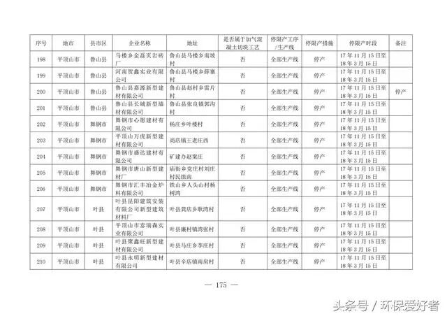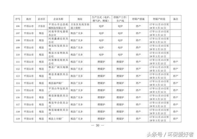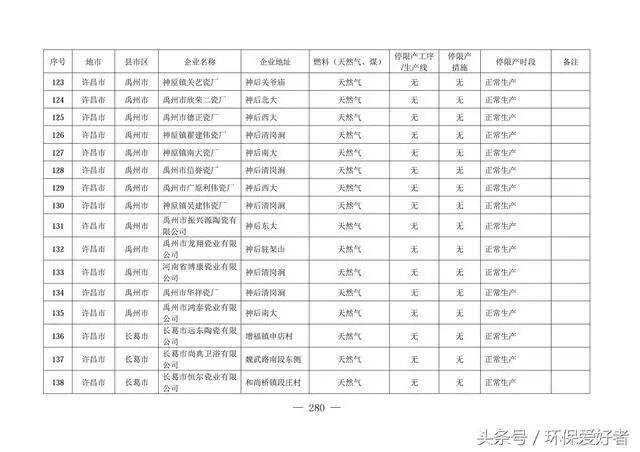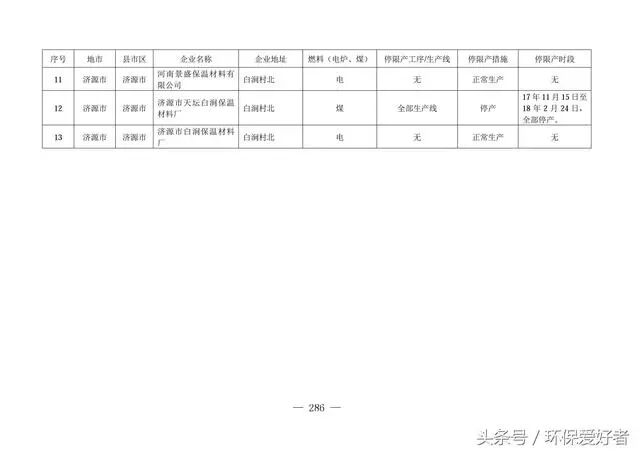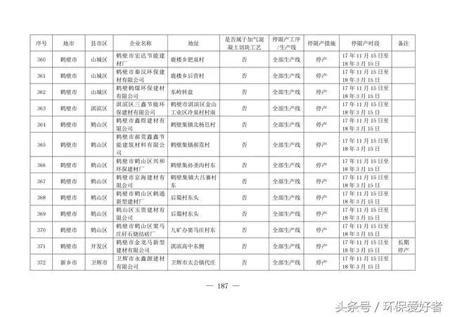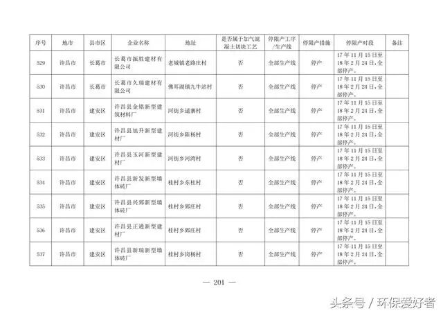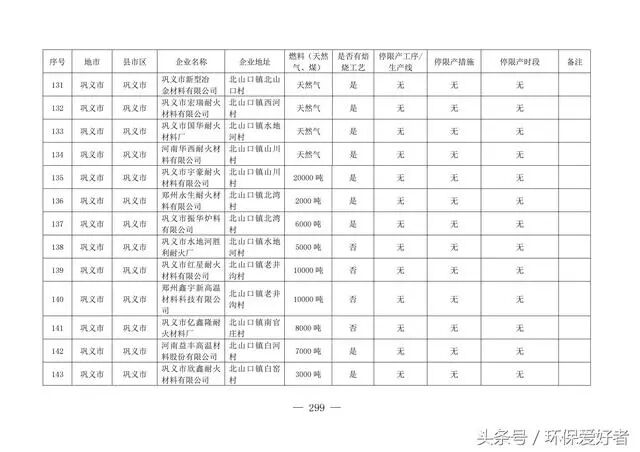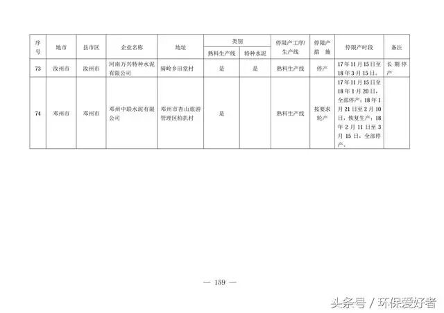 1.郑州市、开封市、安阳市、鹤壁市、新乡市、焦作市、濮阳市、巩义市、兰考县、滑县、长垣县等京津冀大气污染传输通道城市和洛阳市、平顶山市行政区域内的50家水泥、545家砖瓦窑、47家陶瓷、2家岩棉、6家石膏板、23家耐材企业,2017年11月15日至2018年3月15日,全部停产。