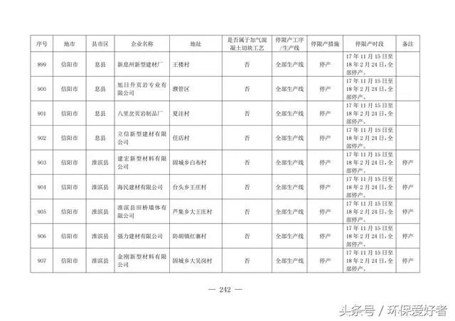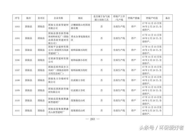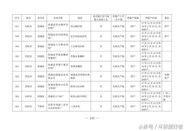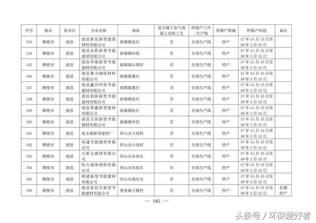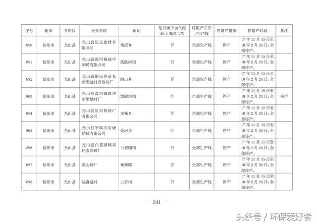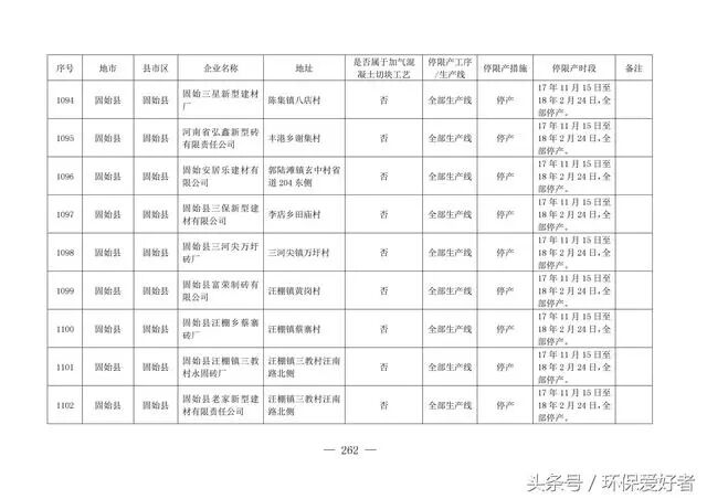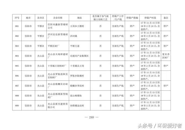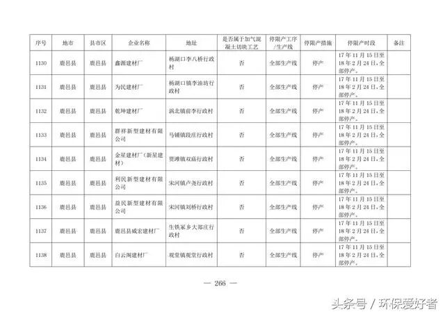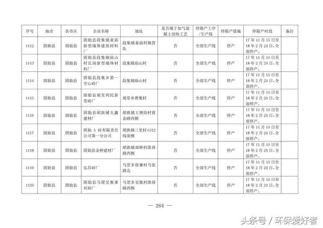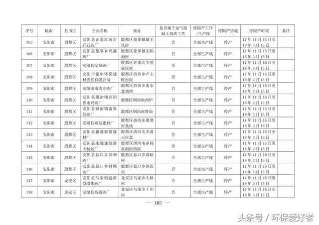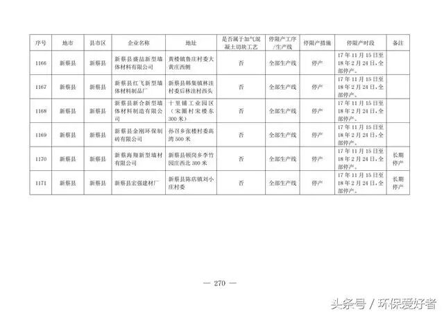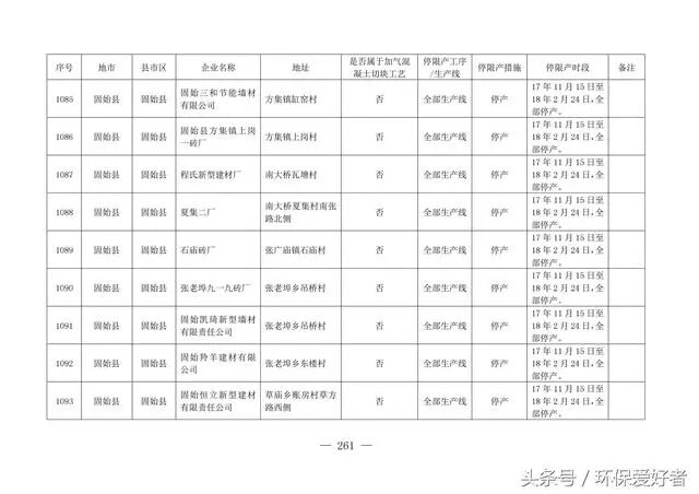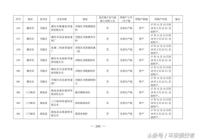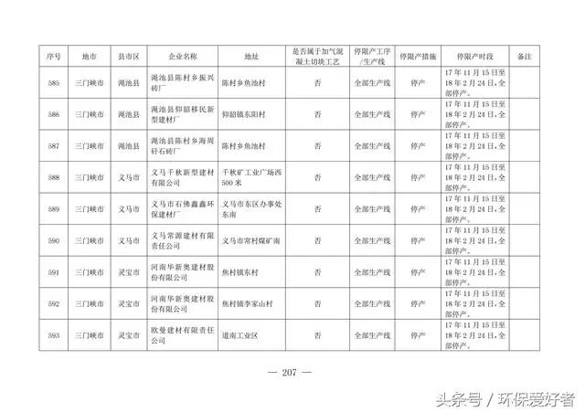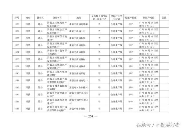 3.其余省辖市、省直管县(市)行政区域内的609家砖瓦窑、14家陶瓷、1家岩棉、2家石膏板、5家耐材企业,2017年11月15日至2018年2月24日,全部停产;2018年2月25日起,恢复生产。