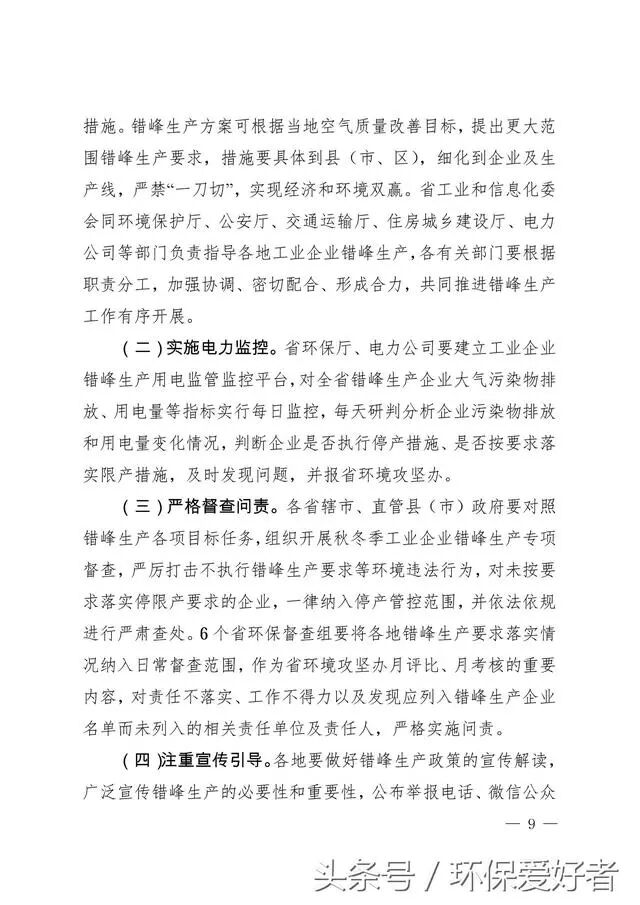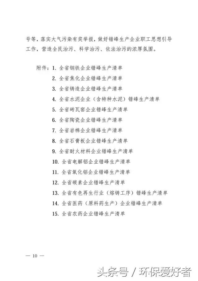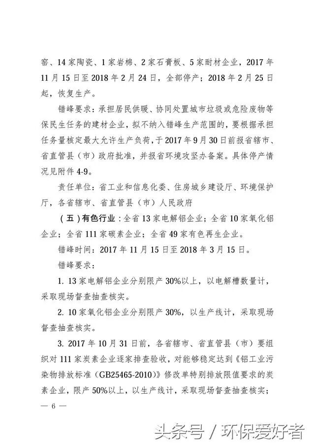 错峰要求:承担居民供暖、协同处置城市垃圾或危险废物等保民生任务的建材企业,拟不纳入错峰生产范围的,要根据承担任务量核定最大允许生产负荷,于2017年9月30日前报省辖市、省直管县(市)政府批准,并报省环境攻坚办备案。具体停产情况见附件。