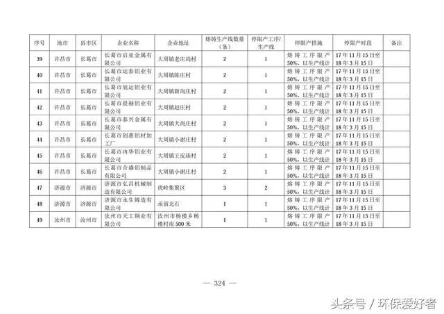 1.使用煤、焦炭等为燃料的99家铸造企业,全部停产。其中,包含铸造工序的机械加工等相关企业,仅停产铸造工序;同时包含燃煤炉、电炉工序的,仅停产燃煤炉,达标排放的电炉,可正常生产。特殊情况确需生产的,于2017年9月30日前报省辖市、省直管县(市)政府批准,并报省环境攻坚办备案。