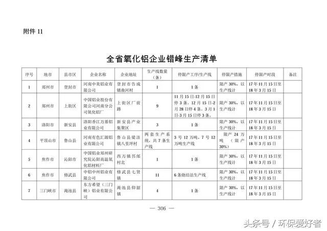 2. 10家氧化铝企业分别限产30%,以生产线计,采取现场督查抽查核实。