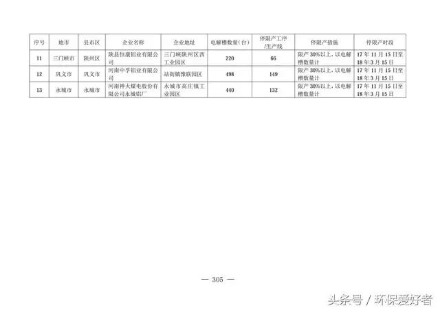 1. 13家电解铝企业分别限产30%以上,以电解槽数量计,采取现场督查抽查核实。