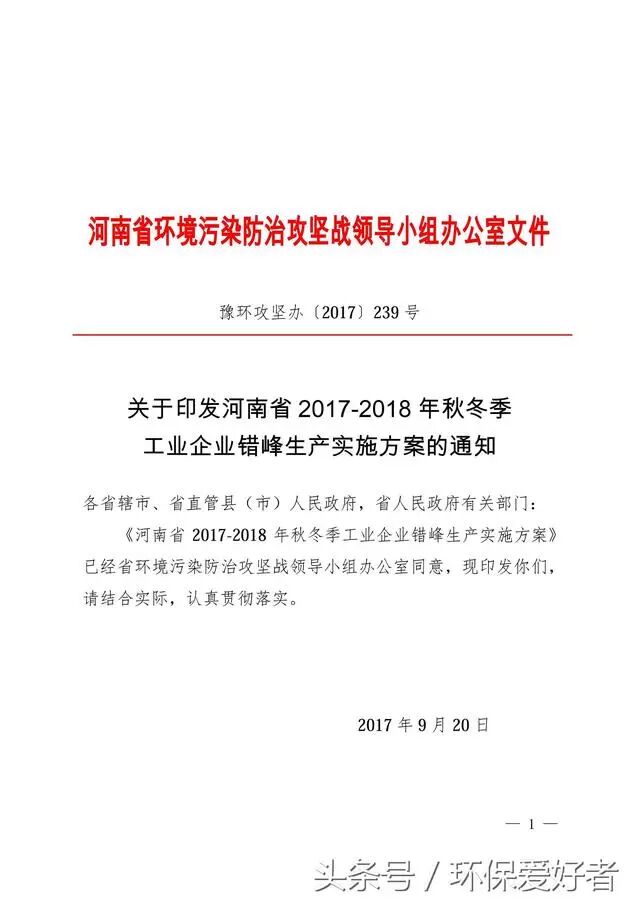 来源:河南环保厅河南省环境污染防治攻坚战领导小组办公室 2017年9月20日印发