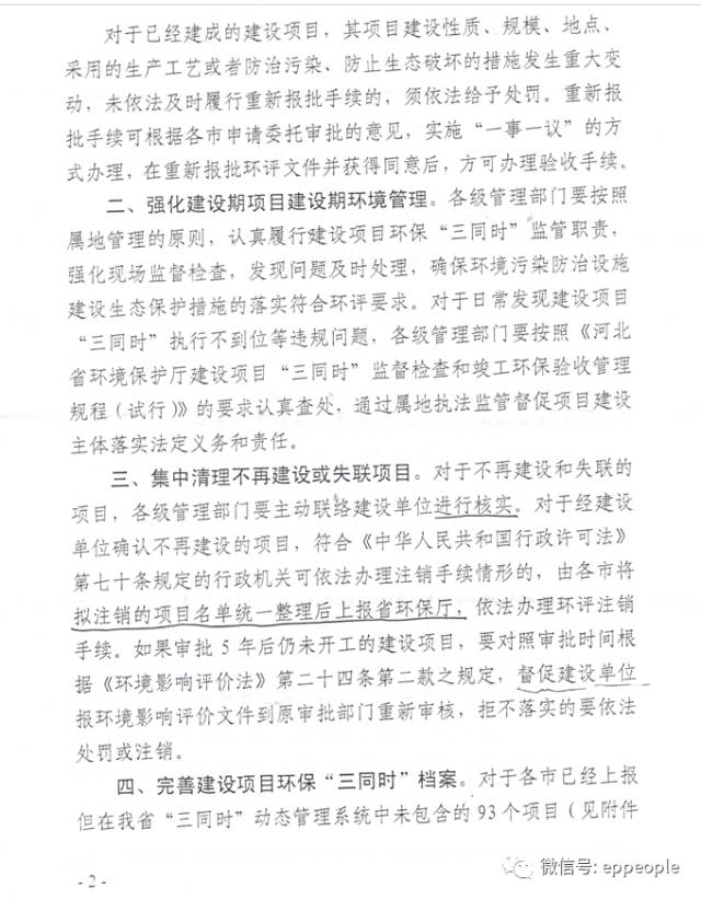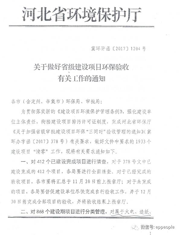 为贯彻落实新的《建设项目环境保护管理条例》,强化建设单位主体责任,衔接建设项目排污许可证制度,完成河北省环保厅《关于加强省级审批建设项目环保“三同时”验收管理的通知》(冀环办字函〔2017〕378号)有关要求,做好文件中要求的1933个建设项目“清零”工作,现将有关要求通知如下。