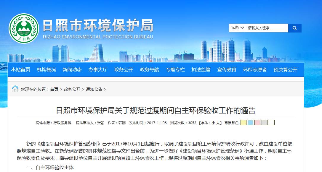 日照市环境保护局关于规范过渡期间自主环保验收工作的通告