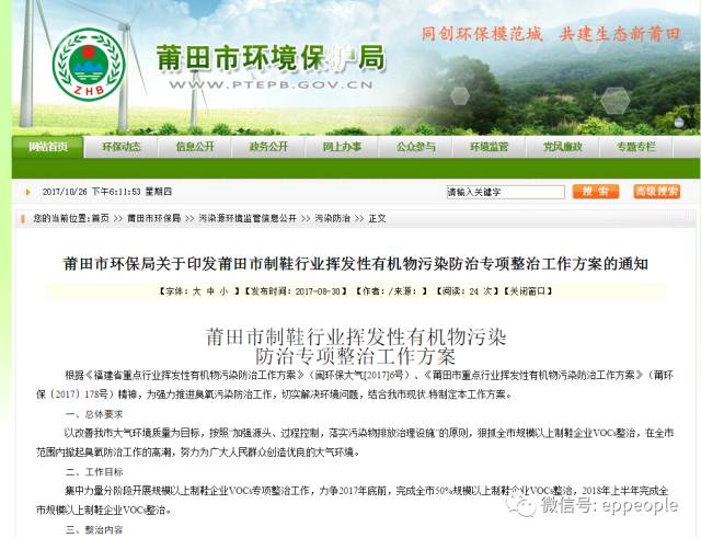 莆田市环保局关于印发莆田市制鞋行业挥发性有机物污染防治专项整治工作方案的通知