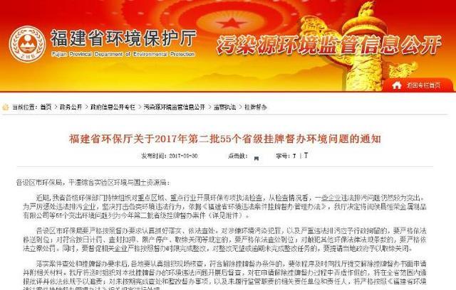 省环保厅近日将55个突出环境问题列为今年第二批省级挂牌督办案件,其中涉及宁德市的有3家企业。省环保厅责成宁德市环保局依法查处,责令限期整改,挂牌督办期限至12月31日。