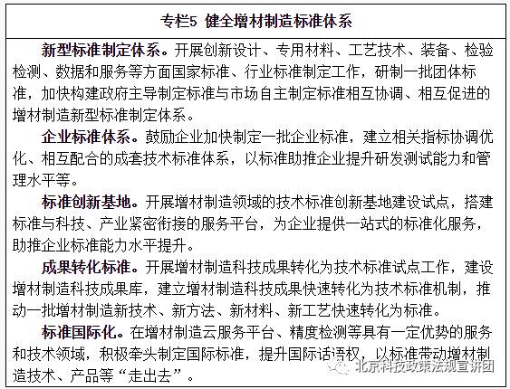 二是健全增材制造标准体系。强化企业在标准化活动中的主体地位,加大力度开展增材制造标准制修订工作,不断提升标准水平,增强标准有效供给,以标准支撑和引领增材制造产业发展。