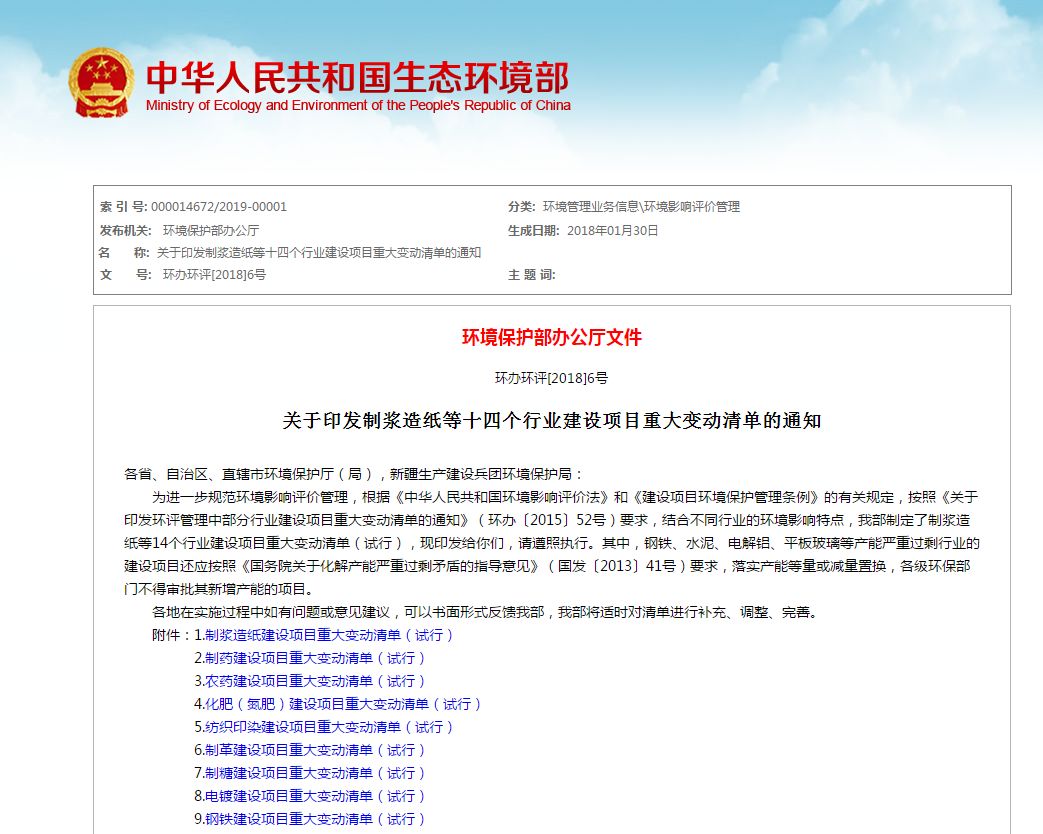 关于印发制浆造纸等十四个行业建设项目重大变动清单的通知