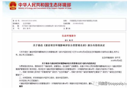 《关于修改〈建设项目环境影响评价分类管理名录〉部分内容的决定》已于2018年4月28日经生态环境部第3次部务会议通过,现予公布,自公布之日起施行。