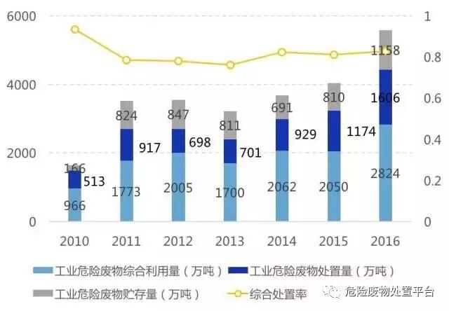 在环保监管力度增强,各省均推出省级督查方案背景下,危废处置刚需再次提升,尤其是要求进入规范渠道处置的量增加。但市场情况是,实际产生量远大于统计量(披露16年5347万吨,预计实际8000万吨),低综合利用处置率(83%),低有效利用率(25%),导致整体危废的处置供不应求。