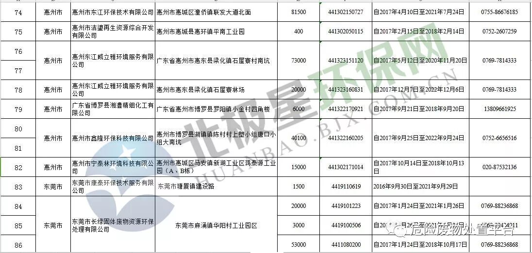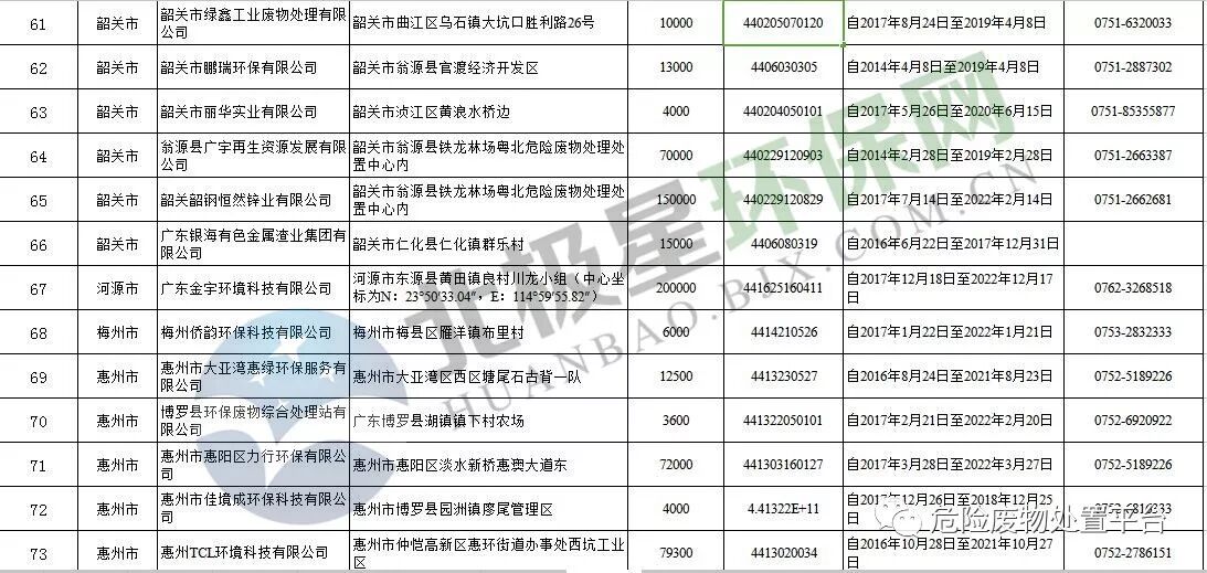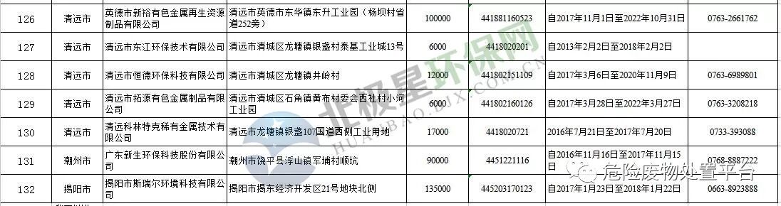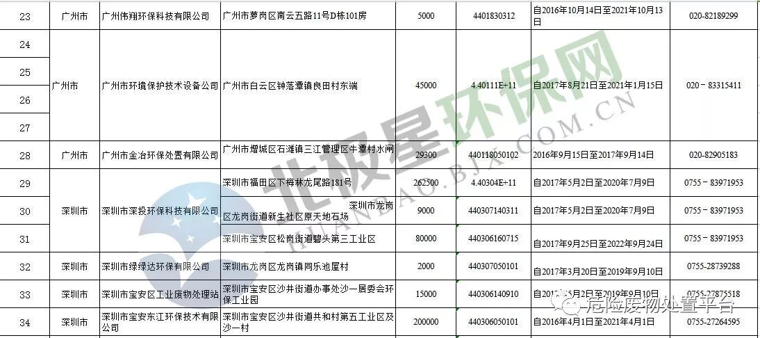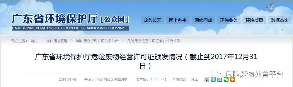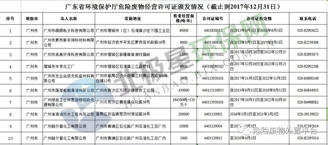 广东省危险废物经营许可证颁发情况(截止到2017年12月31日