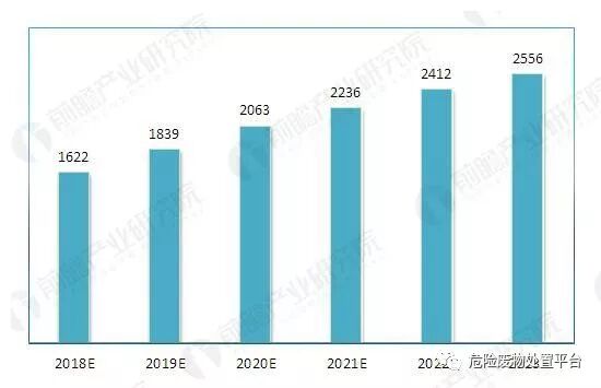 图表4:2018-2023年中国危废处理市场规模预测(单位:亿元)