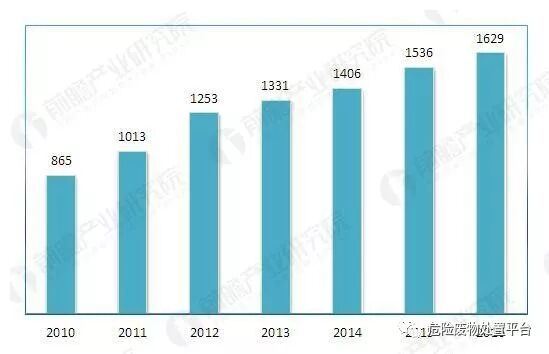 图表2:2010-2016年中国危险废物产生量(单位:万吨)