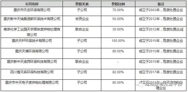 据公开资料显示,目前新中天旗下有8家子公司,其中7家涉及到危废处置,1家为电子废弃物处理企业。