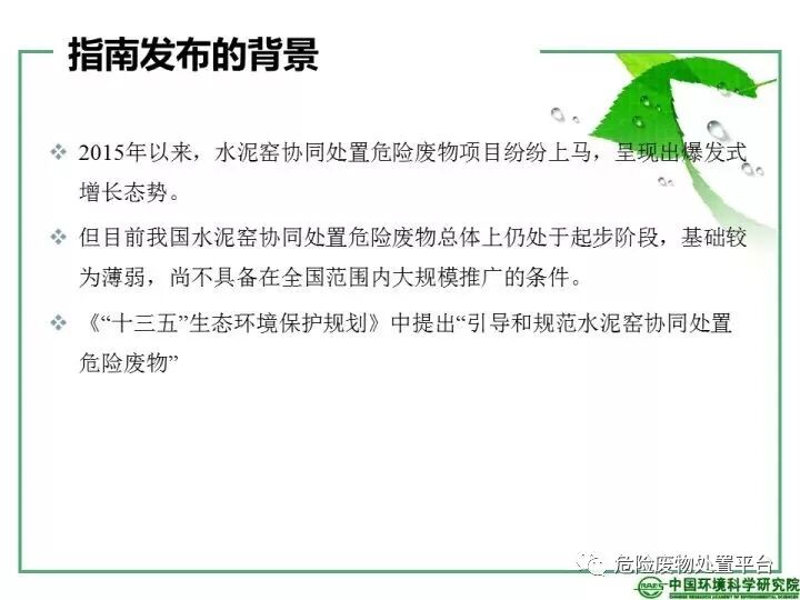 我国水泥窑协同处置技术发展现状及《水泥窑协同处置危险废物经营许可证审查指南》