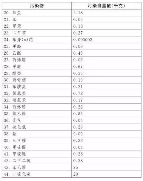第一步,计算各污染物的污染当量数