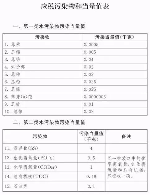 备注:同一排放口的化学需氧量、生化需氧量和总有机碳,只征收一项。