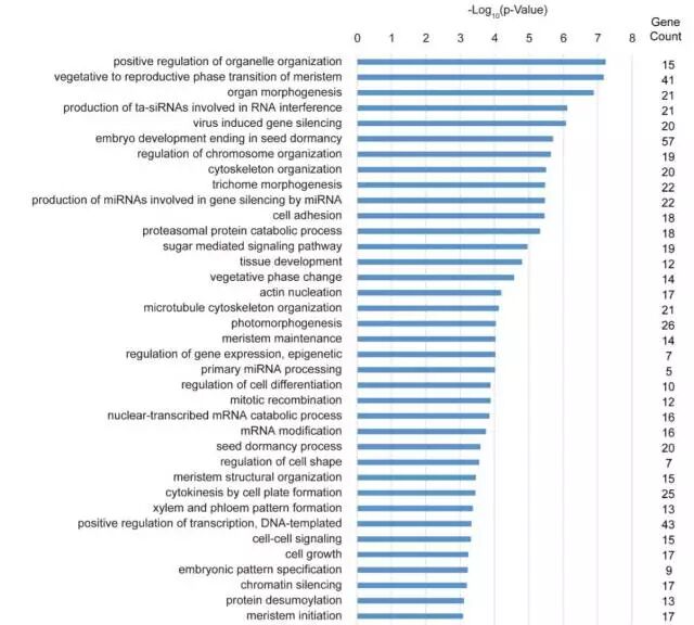 此外,研究人员分别对野生型和ALKBH10B突变体进行了RNA-seq和m6A-IP-seq。测序结果表明,ALKBH10B广泛影响了拟南芥mRNA的甲基化谱。相比野生型,在突变体中含高甲基化的基因进行功能注释显示,ALKBH10B缺失影响的基因功能与所观察到的alkbh10b-1突变体表型相吻合。