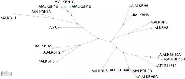 人和拟南芥中AlkB家族蛋白的亲缘关系