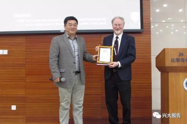 报告结束后,Weisman教授和与会者进行了热烈的讨论。此次报告受到老师和同学们的高度好评。吴凯教授向Weisman教授赠送了“兴大报告”奖章,并合影留念。