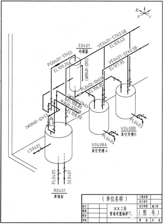 管道轴测图又称管段图,按管道HG20519.13规定绘制,是用轴测图表达管路布置的图样。表达一段管道管件、阀门、控制点等布置的情况,广泛应用于上、下水道,采暖和通风等工程。