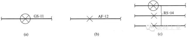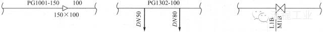 (a)同轴异径管标注 (b)同管道号不同管径标注 (c)同管道号不同等级