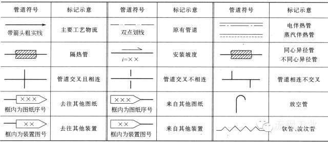 注意:在实际生产中,为了便于操作,常将各种管线按规定涂成不同颜色。因此,在生产车间实地了解工艺流程或进行操作时,应注意颜色的区别。